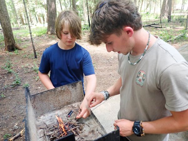 What if it’s raining? We’ll find shelter, play games, build skills, set up tarps, or maybe even continue with the activity in spite of the rain.